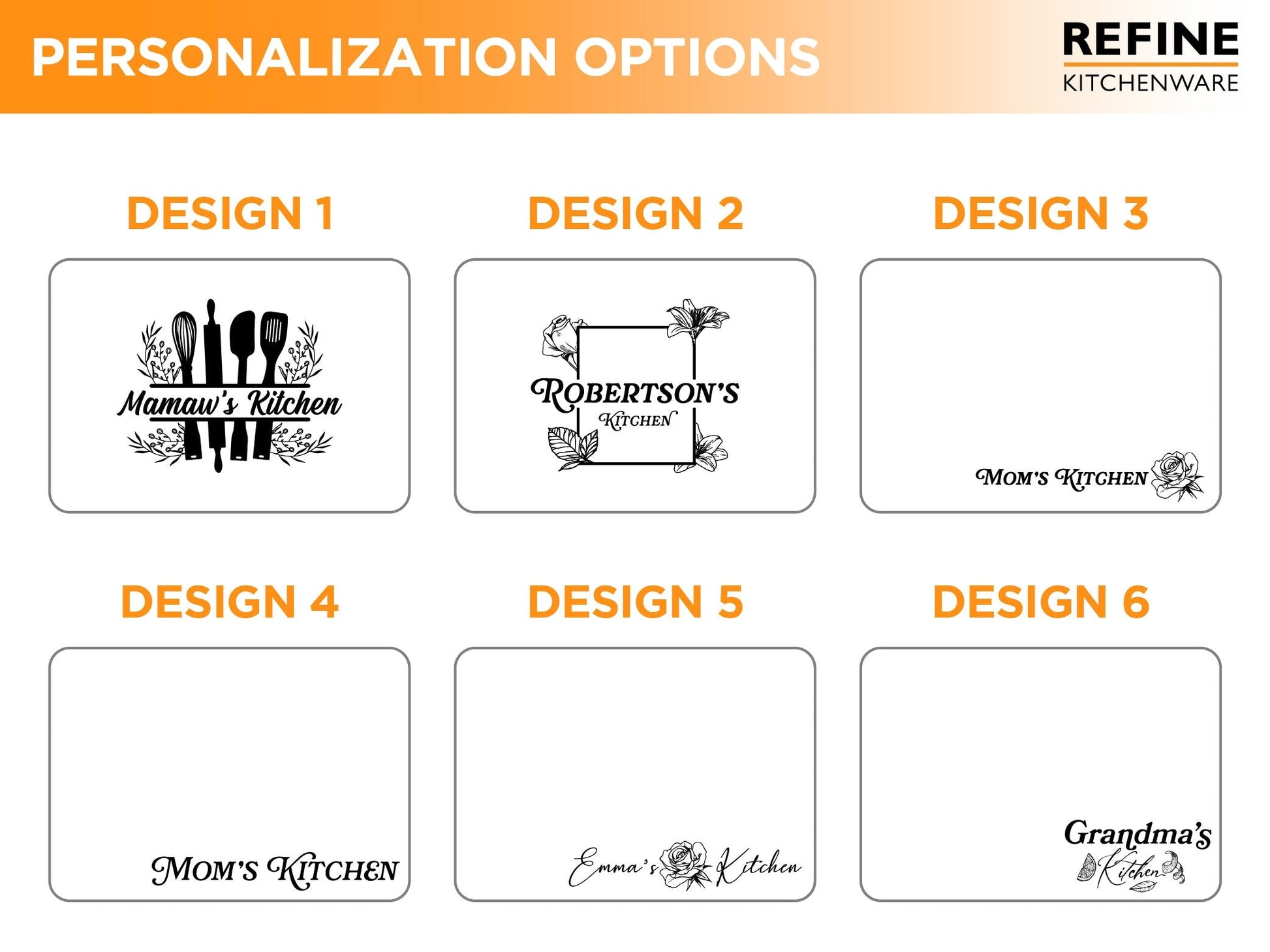 2.) Enter the text exactly as you would like it engraved. Example: "Katie's Kitchen" or "Mom's Kitchen"